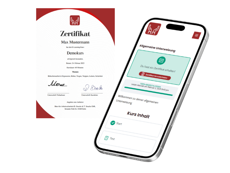 Sie möchten Ihre Mitarbeitenden effizient und rechtssicher schulen – ohne Papierkram, ohne komplizierte Tools? Dann sind Sie bei uns richtig. Wir bieten digitale Unterweisungen aus einer Hand. Rechtssicher, flexibel und auf Knopfdruck einsatzbereit.